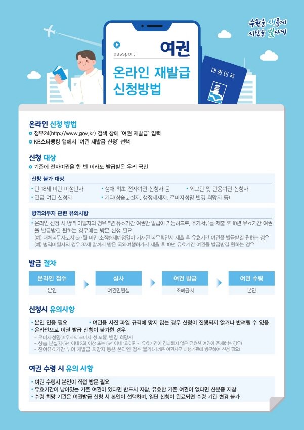정부24홈페이지, KB스타뱅킹 앱에서 신청 후 수원시 여권민원실에 방문 수령