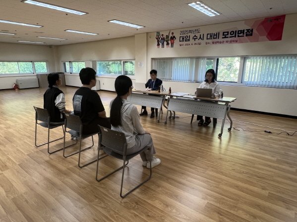 의왕시 진로진학상담센터는 지난 29일 평생학습관에서 관내 고3 수험생 50여 명을 대상으로 ‘2025학년도 대입 수시 대비 모의면접 프로그램’을 개최했다고 밝혔다.