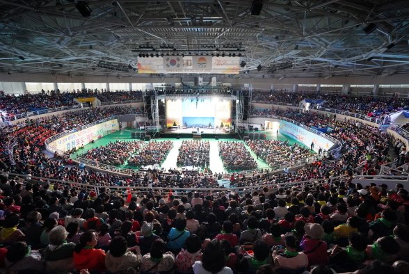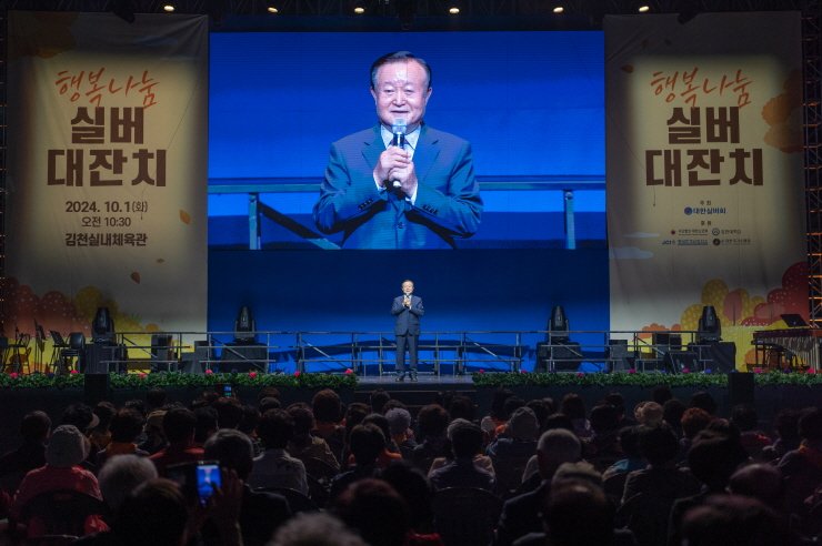 대한실버회가 주최한 ‘행복나눔 실버대잔치’가 1일(화) 경북 김천실내체육관에서 일 만여 명의 어르신들이 가득 참석한 가운데 성황리에 열렸다.