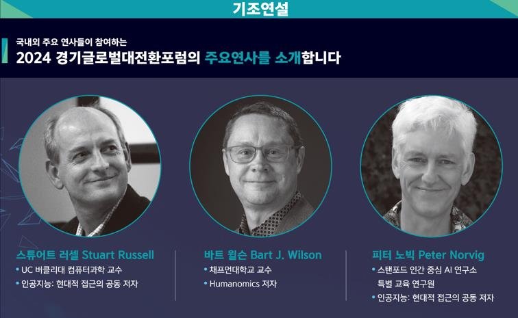 인공지능(AI)과 휴머노믹스가 우리의 미래에 어떤 기회를 제공할 수 있을지 세계적 석학과 논의하는 ‘2024 경기글로벌대전환포럼’이 10월 24일과 25일 양일간 고양 킨텍스에서 열린다.