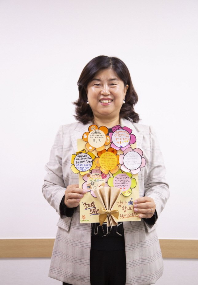조미옥 의원이 서호초 학생들의 손편지에 행복해하고 있다.