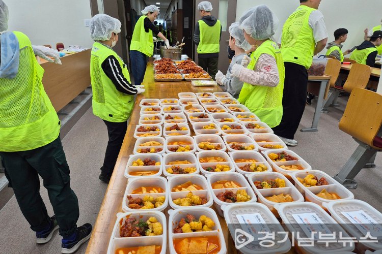 ‘사랑의 도시락 나눔’ 안양시가족센터(센터장 오연주)가 운영하는 모두가족봉사단이 16일 대림대학교와 함께 사랑의 도시락을 만들었다.