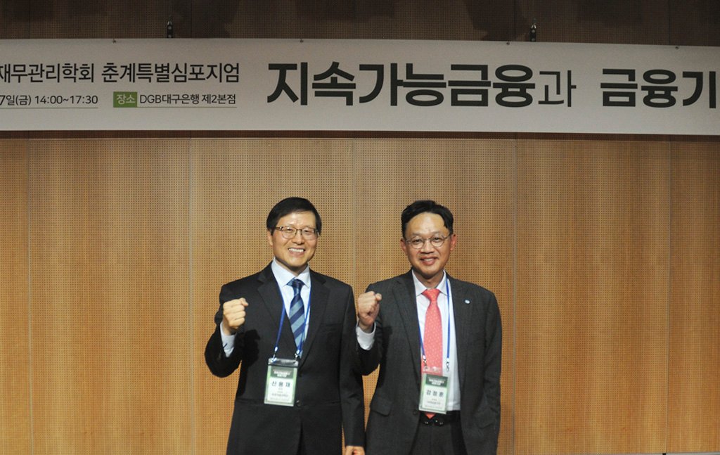 한경국립대학교 경영학전공 신용재 교수((사)한국재무관리학회장)는 DGB 대구은행 제2본점에서 ‘지속가능금융과 금융기관’이라는 주제로 춘계특별심포지엄을 개최했다.
