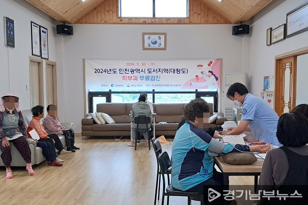 한국한센복지협회 경기·인천지부의 2024년도 인천광역시 도서지역 대청도 피부과 무료검진 모습