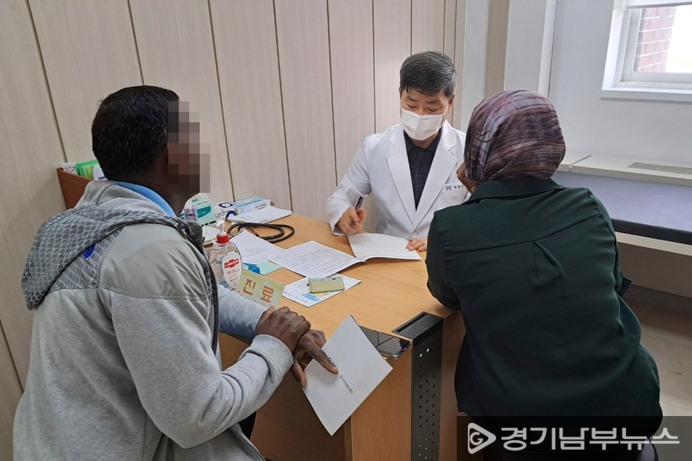 외국인 환자를 검진 중