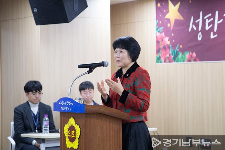 "하나님이 우리에게 주신 가장 좋은 선물은 예수님" 2024 성탄감사예배에서 인사말을 하는 경기도의회 서성란 의원