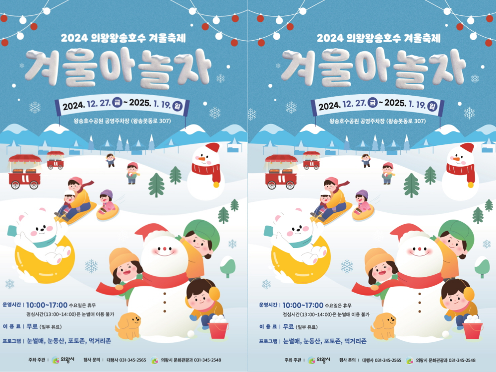 2024 의왕왕송호수 겨울축제 ‘겨울아 놀자’가 12월 27일부터 왕송호수공원 공영주차장(왕송못동로 307)에서 열린다.