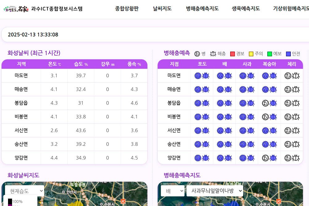 과수 ICT종합정보시스템, 실시간 병해충예측지도 및 기상위험예측지도 등 선진기술 갖춰