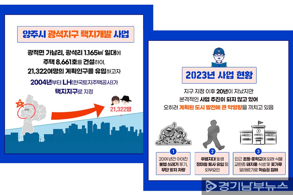 한편, 이 의원은 지난해 7월 주민 항의집회 참석과 9월 경기도의회 대집행부질문을 통해 문제 해결을 촉구해왔다. 이에 김동연 경기도지사는 "경기 북부지역 발전과 양주시 발전을 위해 적극 협의하겠다"고 약속한 바 있다.