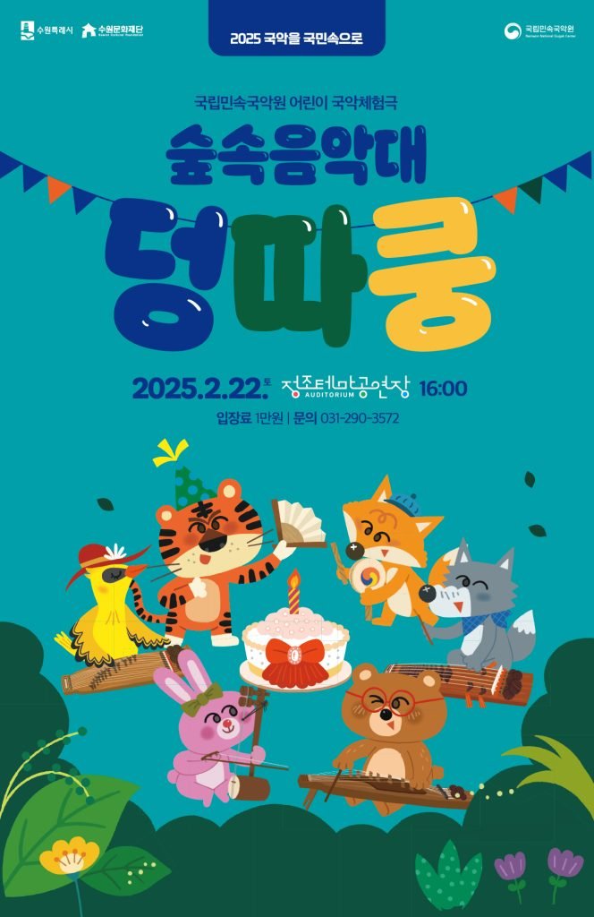 수원문화재단은 오는 22일 오후 4시, 정조테마공연장에서 어린이 국악체험극 '숲속음악대, 덩따쿵'을 개최한다고 밝혔다.
