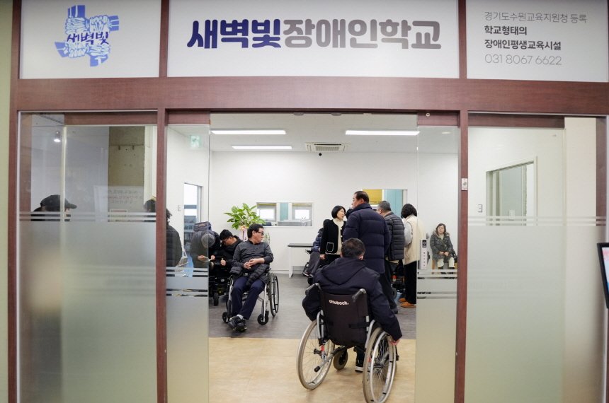 김윤순씨(71·여)역시 4년째 새벽빛 장애인 야학을 다니는 학생이다. 지체장애인인 그는 연극반, 사진반 등 예술 프로그램에 참여하기 위해 학교에 나오는 자체로 위로를 받곤 했다. 하지만 건물 내 장애인 화장실이 부족해 횡단보도를 2개나 건너 멀리 있는 건물로 화장실 원정을 다녀와야 하는 불편이 이만저만이 아니었다. 학교 이전 이후 화장실 이용 불편이 줄어 기쁘다는 김씨는 “장애인에게 친절하게 교육을 해주는 학교의 존재 자체가 행복”이라며 “깨끗한 환경에서 배움을 지속할 수 있도록 도와주신 수원시와 시민들께 감사하다”고 전했다.
