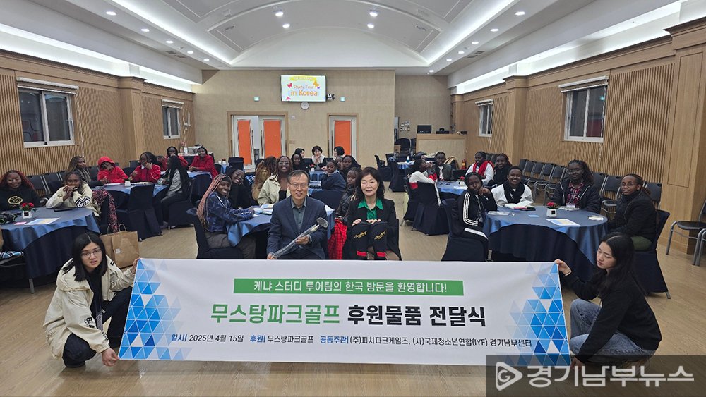 국제청소년연합(IYF) 경기남부센터에서 열린 이 날 후원물품 전달식에는 케냐 메리힐 여자 고등학교(Maryhill Girl’s High School) 학생 24명과 교사, IYF경기남부센터 지부장, ㈜피치파크게임즈 황옥분 대표 등 40여 명이 자리했다.