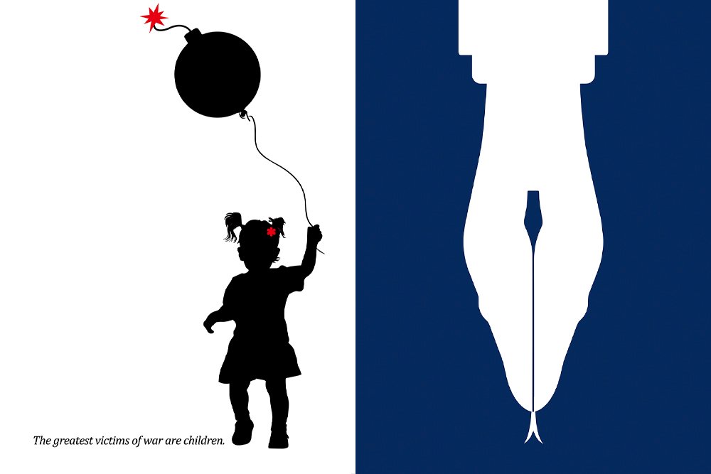 (좌)작품1.전쟁의 가장 큰 희생자는 아이들이다, (우)작품2.팩트체크하세요