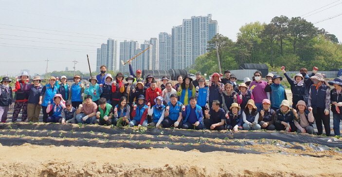 화서1동 새마을지도자협의회 주관…주민과 자원봉사자들 ‘사랑의 고구마 심기’ 참여