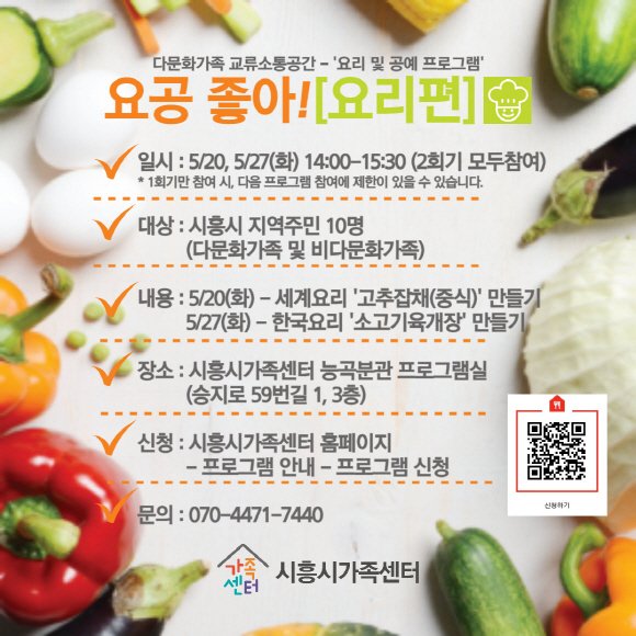 시흥시가족센터 능곡분관은 오는 5월 20일과 27일, 다문화가족 교류소통공간 ‘다가온(ON)’ 에서 시흥시 지역주민을 대상으로 ‘요공 좋아! [요리편]’ 프로그램을 진행한다. ‘요공 좋아!(요리, 공예 좋아!)’는 요리와 공예를 매개로 다문화가족과 비다문화가족이 자연스럽게 교류하고 소통할 수 있도록 기획된 지역주민 교류 소통 프로그램이다. 5월에는 요리 프로그램 2회, 6~7월에는 공예 프로그램 2회가 진행될 예정이며, 참여자들이 함께 활동하며 상호 이해와 열린 소통의 기회를 마련할 수 있도록 지원한다. 시흥시가족센터는 이번 프로그램을 통해 지역사회 내 다양한 가족 간의 열린 소통 공간 지원과 나아가 문화적 공감대 형성, 여가활동 지원에 이바지하고자 한다. 문의는 시흥시가족센터 능곡분관 031-432-7994로 하면 된다.