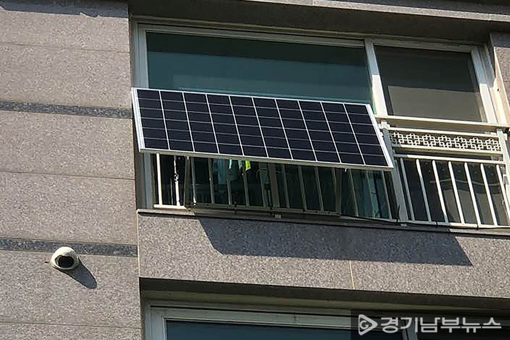 난간 거치형 미니태양광 발전설비(모듈 1장) 설치한 성남지역 공동 주택