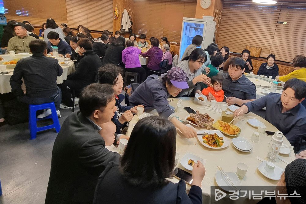 꿔바로우 등 한상 가득, 80명 식사하며 ‘행복잔치’ 누려