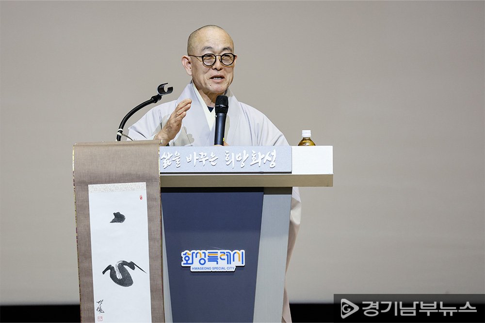 특강에 앞서 정명근 시장은 인사말을 통해 “공직자의 마음가짐은 행정 변화의 시작점이며, 오늘 특강이 깊은 성찰의 기회가 되길 바란다”고 전하며, 성효 큰스님을 ‘우리 시대를 대표하는 수행자이자 지도자’로 소개했다.