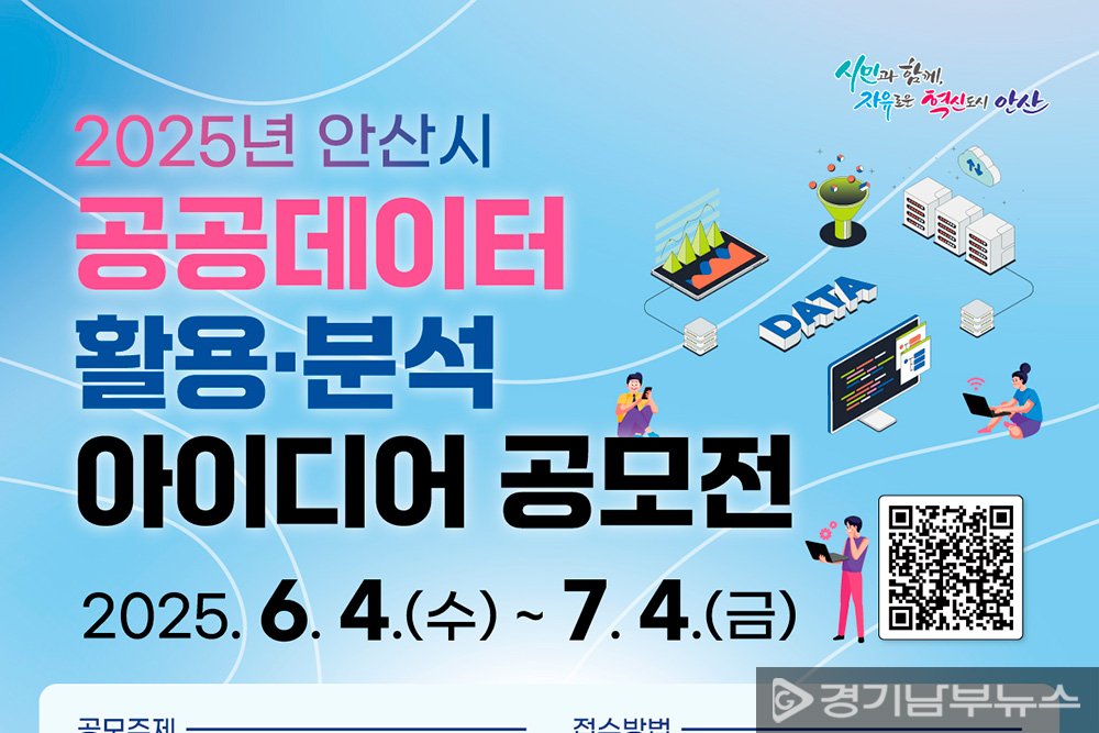 ‘2025년 안산시 공공데이터 활용·분석 아이디어 공모전’가 다음 달 4일부터 진행된다. 이번 공모전은 시민들의 공공데이터를 활용한 창의적 정책 제안을 활성화하기 위한 것으로 ▲산업 ▲교통 ▲복지 ▲문화 ▲관광 등 안산시의 생활 불편을 해결하고 시의 발전에 기여할 수 있는 자유 주제로 진행된다.