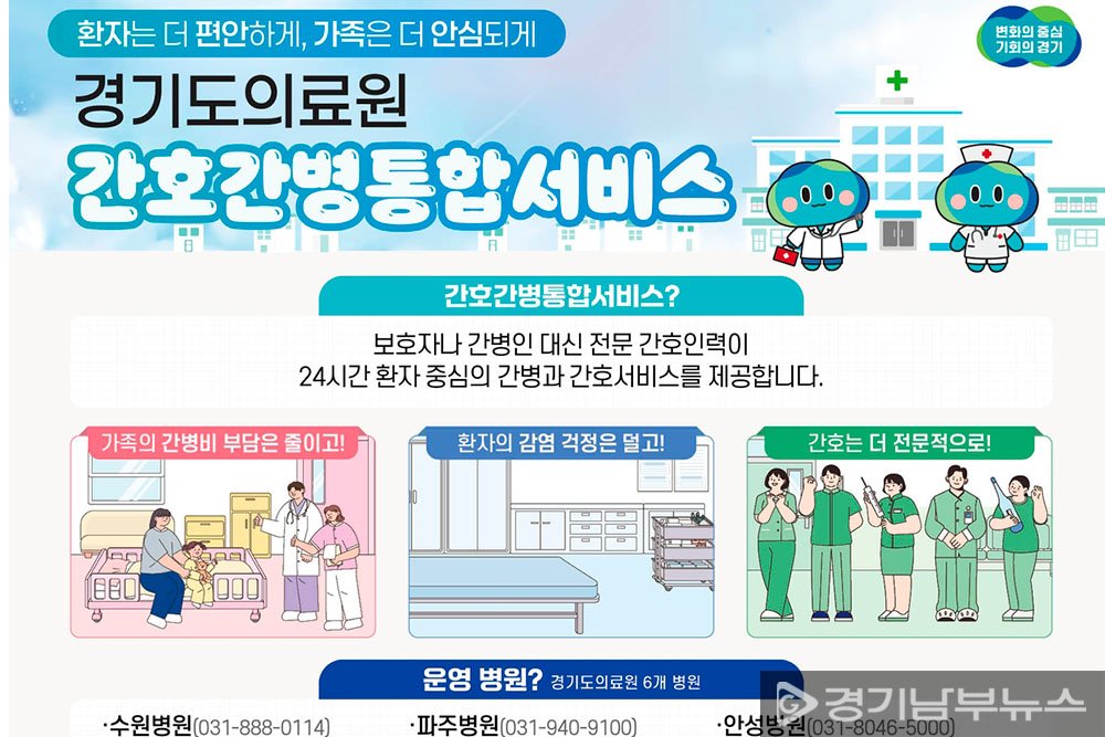 경기도는 “간호간병통합서비스는 환자의 건강 회복과 가족의 부담 경감이라는 두 가지 목표를 동시에 달성할 수 있는 제도”라며 “더 많은 도민이 이용할 수 있도록 병상 확대를 추진하겠다”고 밝혔다.