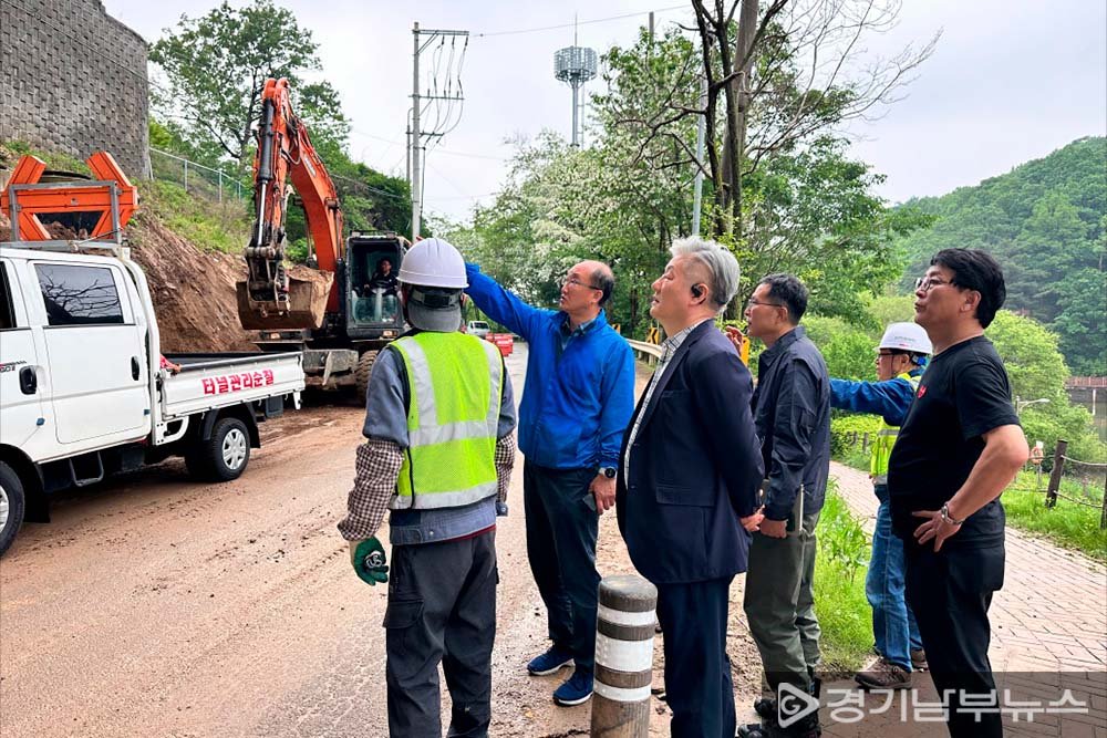 이번 현장 점검은 지난 16일 남양주 지역에 발령된 호우경보로 인해 도로 사면이 유실되고 토사가 유출되는 등 교통 안전에 심각한 문제가 발생한 데 따른 조치다. 특히 팔현로는 오남호수공원 진입로이자 주민 이용이 많은 생활도로로, 배수시설 부족으로 빗물이 도로 위로 넘치는 현상까지 발생하고 있다.