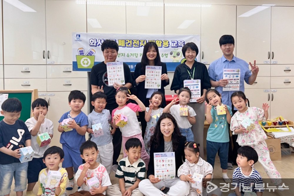 교육 대상은 화서초등학교 병설유치원 2개 반과 시립 화서1동 어린이집 7세 반으로, 아이들은 한국배터리자원순환협회에서 지원한 폐건전지함 키트를 직접 만들어 보고, 사용이 끝난 건전지를 분리 배출하는 과정을 직접 체험했다. 이를 통해 폐건전지가 환경에 미치는 유해성을 쉽고 명확하게 이해하고, 올바른 분리 배출 방법을 몸소 익힐 수 있었다.