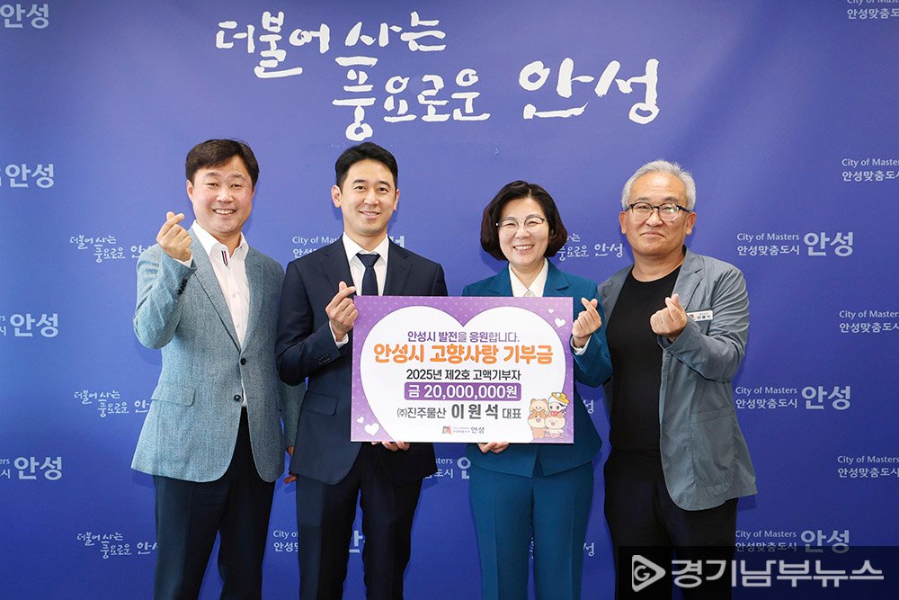 안성시 2025년 고향사랑, 1억 기부 돌파! 26일 ㈜진주물산 이원석 대표 고향사랑 기부금 2,000만 원 기탁