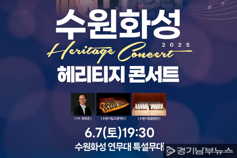 수원시(시장 이재준)는 오는 6월 7일 오후 7시 30분부터 9시 30분까지, 유네스코 세계문화유산 수원화성 연무대 특설무대에서 ‘2025 수원화성 헤리티지 콘서트’를 개최한다고 밝혔다.