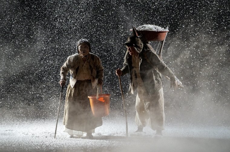 이번 포토스토리의 주제는 요즘 볼 수도 없는 장면이고 MZ세대들에게는 어느 나라 사람이냐고 물을 생소한 사진이다. 올해 무더운 어느 여름날, 연극배우들이 무대에 펼친 장면을 카메라에 담았는데, 그들의 리얼한 표정 연기에 부모세대의 모습이 떠올랐다. 물론 지게와 털모자 등 무대 세팅은 연출된 것이고 내리는 눈발은 계절감을 위해 설정되어 부모세대를 회상하기에 충분했다. 우리 부모님들은 배고프고 춥고 어렵던 그 시절을 어떻게 기억하실까?
