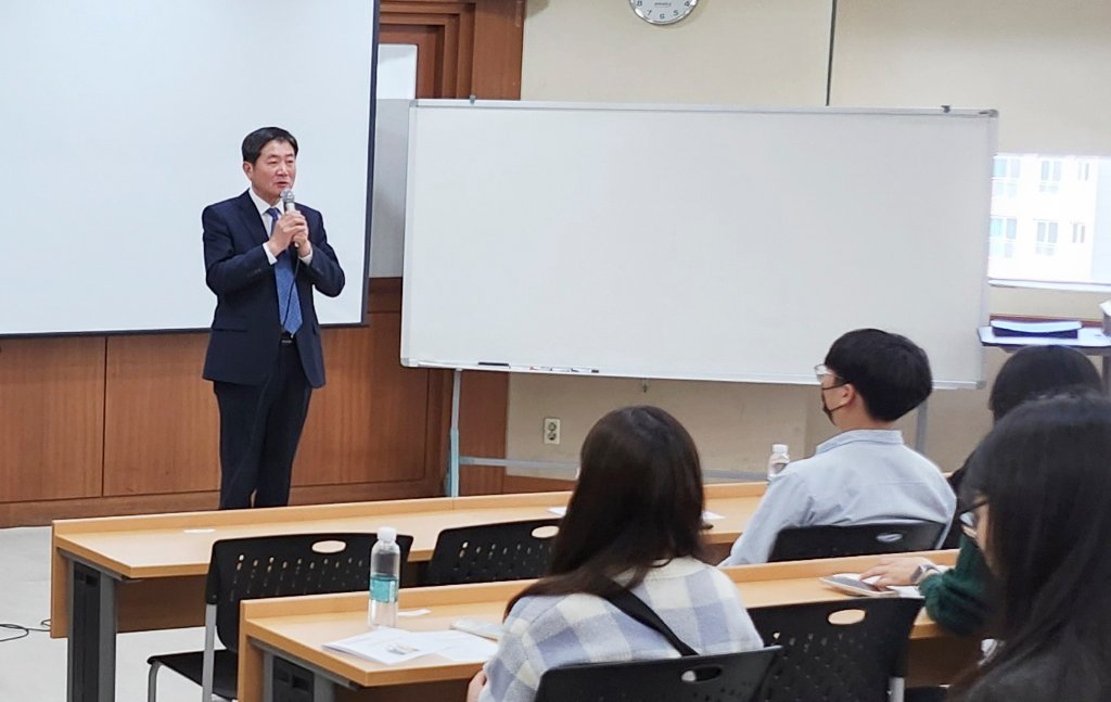 [2023 특별기획] ‘사할린동포 영주귀국자의 두 번째 꿈 이야기’ 대학생기자단들을 격려하는 경희대학교 김태형 교수. 4월 1일 경기남부뉴스김태형 교수는 “경희대학교는 1911년 신흥강습소, 1919년 신흥무관학교에서 시작됐는데, 이곳에서 2023 대학생기자단 발대식을 하게 되니 뜻깊다.”라며 “최선을 다하는 대학에서의 경험이 앞으로 인생의 모토가 될 것”이라고 기자단을 격려했다.
