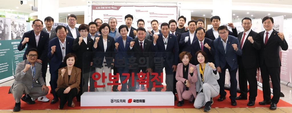 27일(금) 경기도의회 국민의힘은 호국보훈의 달을 맞아 ‘평화와 안보의 가치를 공유하는 안보 기획전’ 개막식을 경기도의회 1층 로비에서 개최했다. 이번 전시는 6·25 전쟁의 역사와 교훈을 되새기고, 도민의 안보의식을 고취하기 위해 기획되었다.