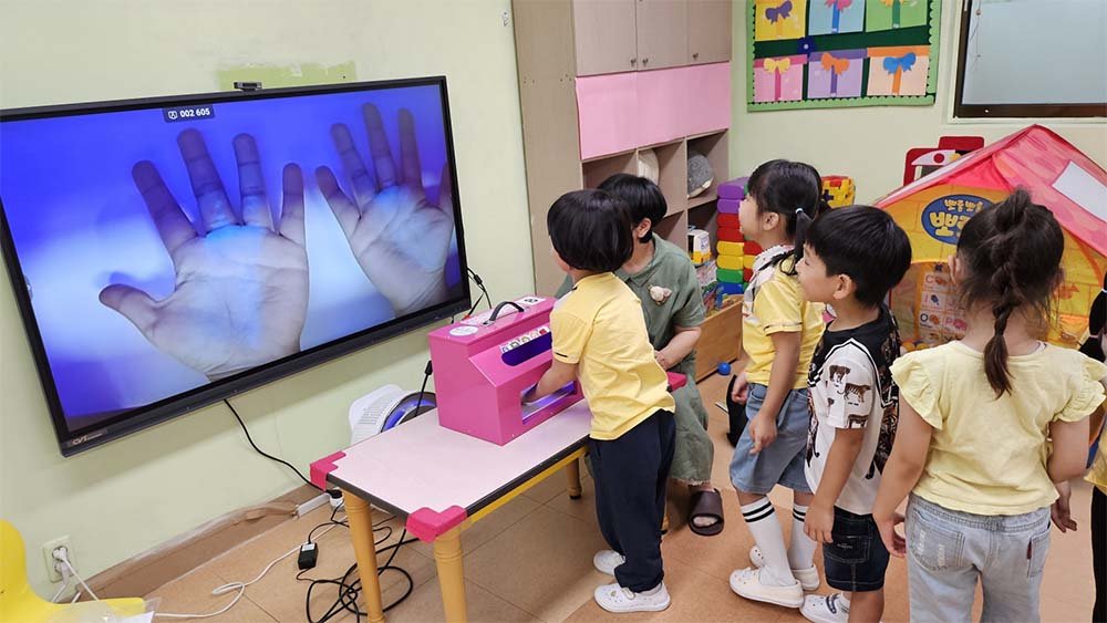 첫 번째, ‘찾아가는 손 씻기 체험교육’은 손 씻기 전·후를 비교할 수 있는 ‘뷰박스’를 활용해 형광로션 체험을 진행하고 감염병 예방에 효과적인 손 씻기 수칙을 실습을 통해 습득하도록 했다.