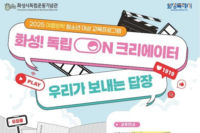 화성특례시는 여름방학을 맞아 청소년을 위한 진로탐색 체험교육 프로그램 **‘화성! 독립ON 크리에이터: 우리가 보내는 답장’**을 오는 24일부터 화성시독립운동기념관에서 새롭게 운영한다고 4일 밝혔다.