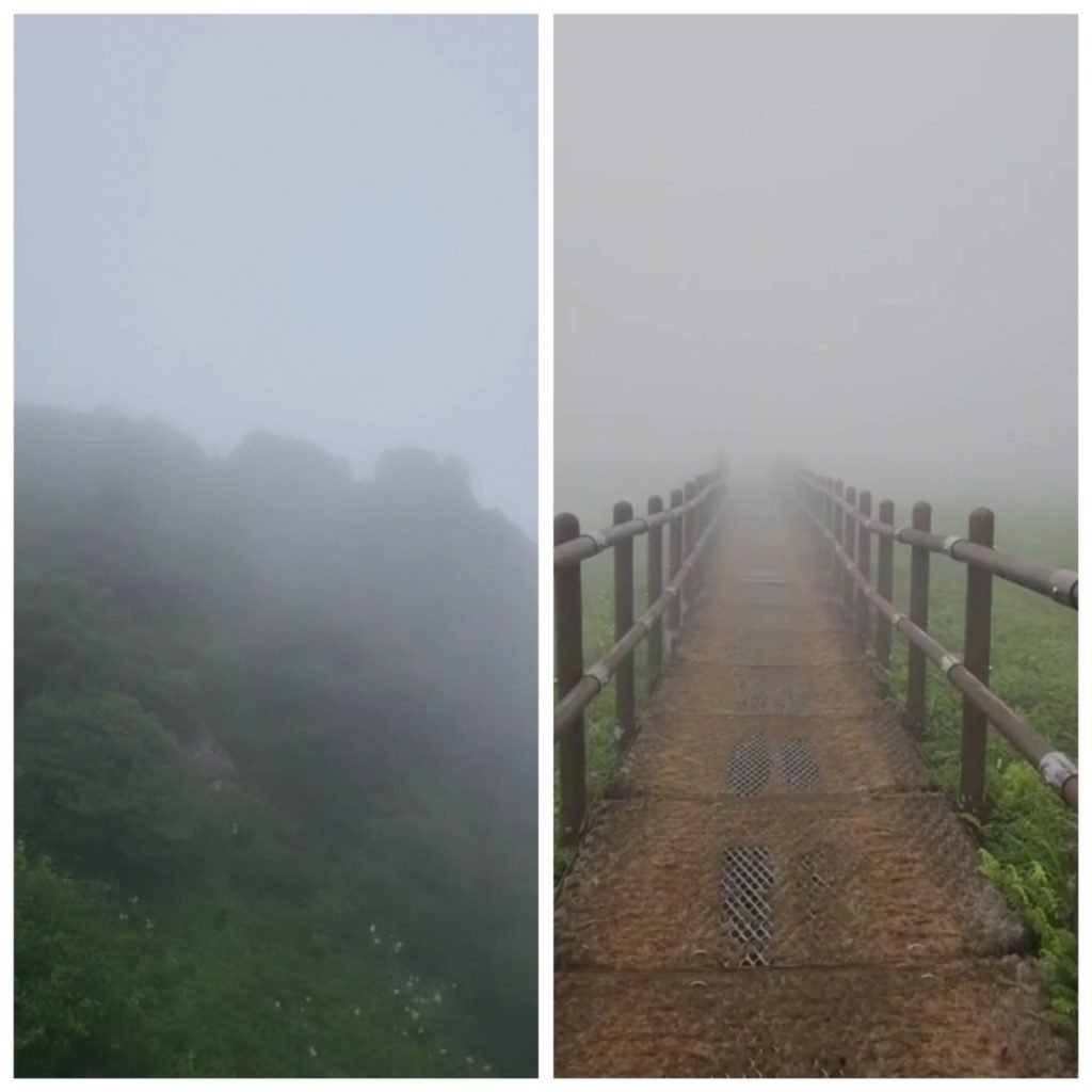 그렇게 걷다 보니 전나무 군락지에 도착했다. 그러나 그 순간부터 짙은 안개가 주변을 가득 메우며 시야를 거의 앗아갔다. 안개의 장막 너머로는 아무것도 보이지 않았고, 길조차 희미하게 가늠할 수 있을 정도였다. 마치 또 다른 세계에 들어선 듯한 기묘한 정적이 감돌았다.