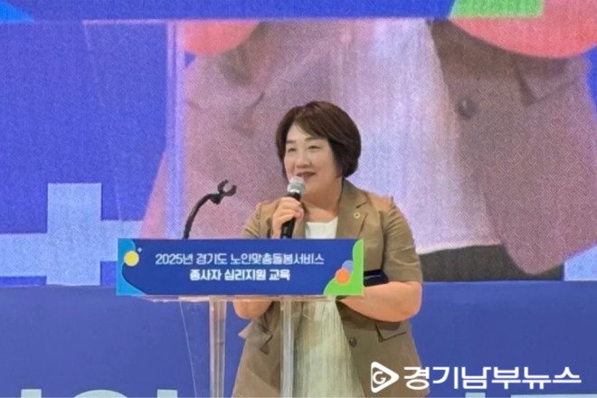 7월 9일(수) 경기도의회 보건복지위원회 지미연 의원(국민의힘, 용인6)은 용인시실내체육관에서 열린 「2025년 경기도 노인맞춤돌봄서비스 종사자 심리지원교육」 행사에 참석해 현장 돌봄 종사자들에게 따뜻한 격려와 함께 용인시 방문을 진심으로 환영했다.