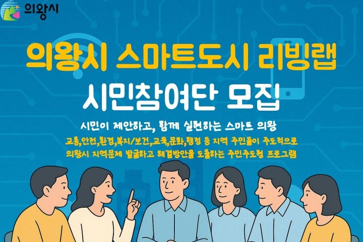 의왕시가 ‘의왕시 스마트도시 리빙랩 시민참여단’을 8월 4일까지 모집한다.