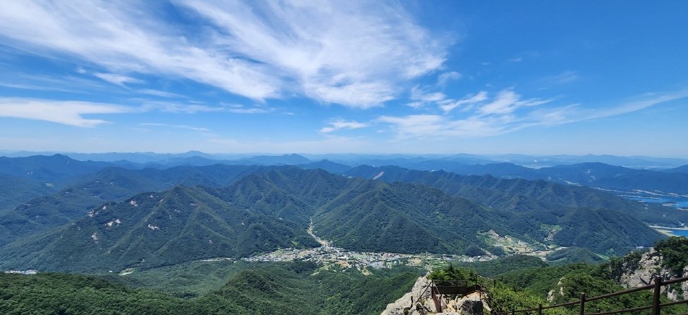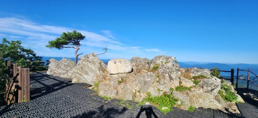 금수산 상천주차장에서 이동하여 월악산 신륵사주차장에 도착을 했다. 햇살이 따갑고 뜨꺼웠다. 영봉 탐방로 입구에 들어서자 비교적 완만한 길이 이어져 여유롭게 스트레칭을 하며 몸을 풀 수 있었다. 그렇게 여러 번 걸음을 멈춰 호흡을 가다듬으며 걷다 보니, 이내 본격적인 산행이 시작되었다. 돌계단과 나무 데크, 가파른 경사길이 이어지며 점점 숨이 차오른다.