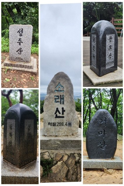 첫 번째 목적지는 성주산(217m). 성주산 입구에서 발걸음을 떼는 순간, 비가 그친 뒤의 끈적한 습기가 온몸을 감쌌다. 채 몇 걸음 떼기도 전에 땀이 비 오듯 쏟아졌지만, 이내 만난 하오고개 구름다리는 잠시나마 시원한 풍경을 선사했다. 왼쪽으로는 소래산의 푸른 능선이, 오른쪽으로는 부천 시내가 한눈에 들어왔죠. 구름다리를 뒤로하고 직진하여 급경사를 오르니, 이윽고 성주산 정상이 눈앞에 펼쳐졌다.