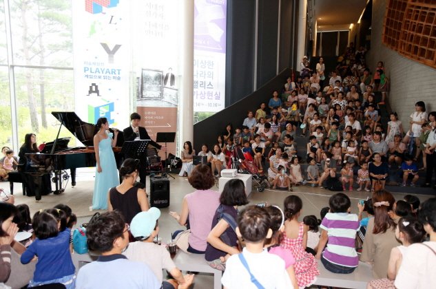 수원시립미술관 로비에서 어린이들을 위한 클래식 공연이 열린 장면.