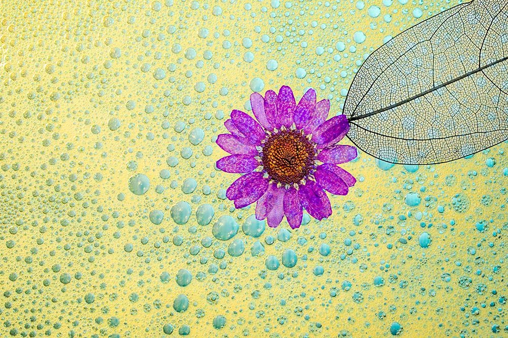 [염미영의 포토스토리 56회] 환희의 노래물방울들이 무수히 내려앉은 이면의 세계. 그 속에서 한 송이 꽃이 환하게 피어났다. 빛을 머금은 투명한 물방울은 이 세상이 여전히 숨을 쉬고 있다는 작은 증거처럼 반짝이고, 얇게 건조된 잎맥은 시간의 결을 따라 흐르는 삶의 흔적처럼 정제되어 있다. 그리고 그 모든 가운데, 마치 생의 한가운데서 솟구쳐 오른 희망처럼, 자줏빛 꽃이 노래하듯 펼쳐져 있다.