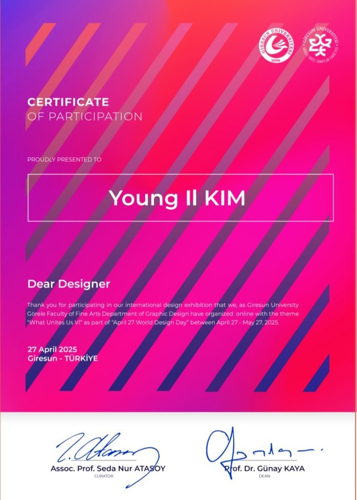 국제디자인전시회는 ‘세계 디자인의 날(4월 27일)’을 기념해 튀르키예 기레순대학교 코렐레미술학부 그래픽디자인학과 주최로 개최됐다. '우리를 하나로 묶는 것 VI(What Unites Us VI)'이라는 주제로 열린 이번 국제전에 세계 각국의 디자이너들이 참여한 가운데 4월 27일부터 5월 27일까지 온라인으로 진행됐다.