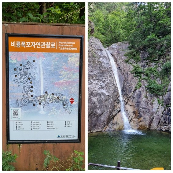 하지만 육담폭포에서 비룡폭포로 이어지는 길은 완전히 달랐다. 가파르게 이어지는 오르막, 거친 숨소리가 숲 속에 퍼졌다. 숨을 몰아쉬며 올라선 비룡폭포 앞에서 일행은 “여기서 쉬고 있을게, 당신 혼자 전망대까지 다녀와요”라며 웃음 섞인 포기를 선언했다.
