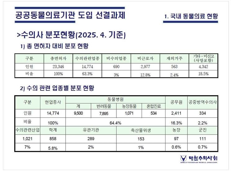 네, 지난 6월 ‘공공동물의료기관 도입 선결과제’를 주제로 대한수의사회, 경기도수의사회, 코리안독스, 경기도청 반려동물과, 농림축산식품부 반려산업동물의료팀 등 5개 기관과 ‘2025 경기도 정책토론회’를 개최했습니다.