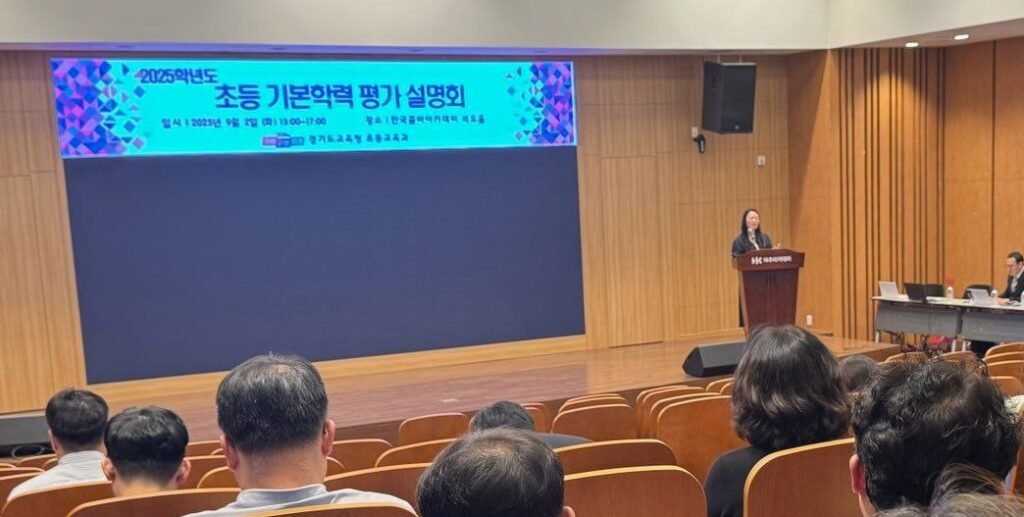여주시에서 열린 동부권역 설명회에는 초등교사와 교육전문직원 100여 명이 참석했다. 설명회는 평가 시행의 원활한 지원과 현장 실무 지원을 중심으로 ▲기본학력 평가의 개념과 운영 방안 ▲교육과정-수업-평가 통합 지원 방안 ▲‘하이러닝’과 인공지능(AI) 서·논술형 평가 적용 사례 ▲평가 결과 활용과 학생 맞춤형 환류(피드백) 방안 등을 안내했다.