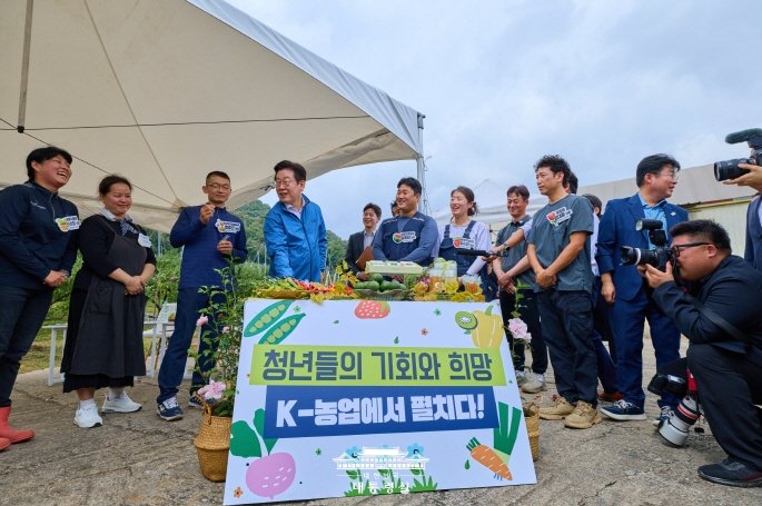 이에 대해 이 대통령은 “농업·농촌은 더 이상 쇠락의 상징이 아니라 새로운 희망”이라며 “정부 정책도 이 방향으로 전환돼야 한다”고 강조했다. 이어 “분야와 지역을 막론하고 청년들이 기회를 가질 수 있도록 지원하는 것이 국민주권정부의 역할”이라며 “청년농업인이 K-농업의 주역으로 도약할 수 있도록 확실히 뒷받침하겠다”고 약속했다.