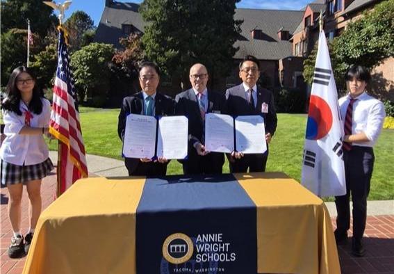 평택시(시장 정장선)는 9월 22일(미국 현지시간) 워싱턴주 타코마시에 위치한 명문 사립학교 애니 라이트 스쿨(Annie Wright Schools)과 '평택국제학교 설립 추진을 위한 양해각서(MOU)'를 체결했다고 밝혔다.