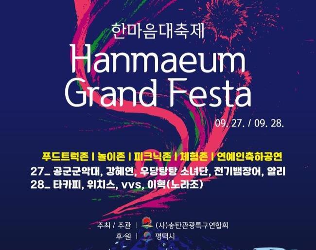 사단법인 송탄관광특구연합회가 주최·주관하는 '제14회 송탄관광특구 한마음대축제'가 오는 27일(토)과 28일(일) 양일간 송탄출장소 앞 송탄관광특구 일대에서 성대하게 열린다.