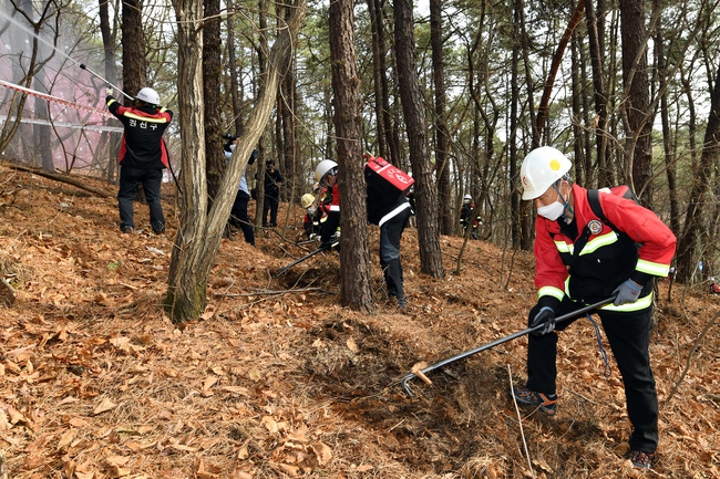 이날 훈련은 산림욕장 일원에서 산불이 발생한 상황을 가정해 진화를 완료하기까지 과정으로 진행됐다.