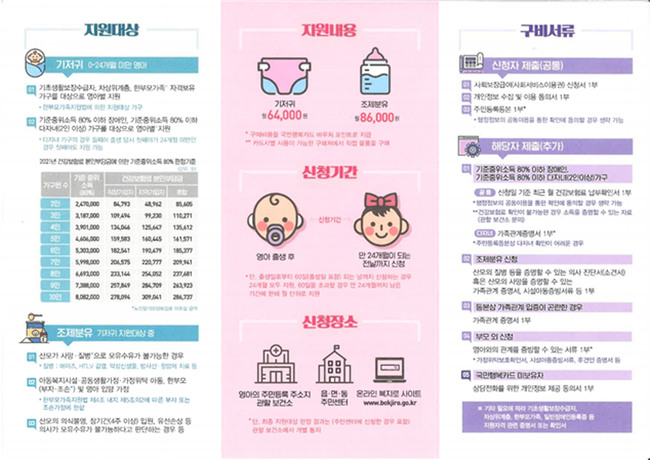 저소득층 영아 기저귀·조제분유 구매비 지원 안내 리플릿