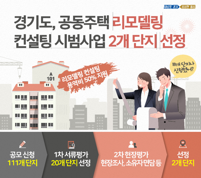 도 관계자는 “예상보다 많은 단지들이 신청함으로써 공동주택 리모델링에 대한 도민들의 관심을 확인할 수 있었다”며 “이번 사업을 통해 리모델링 사업에 대한 효율적인 공공지원 방안들을 만들어가겠다”고 말했다.